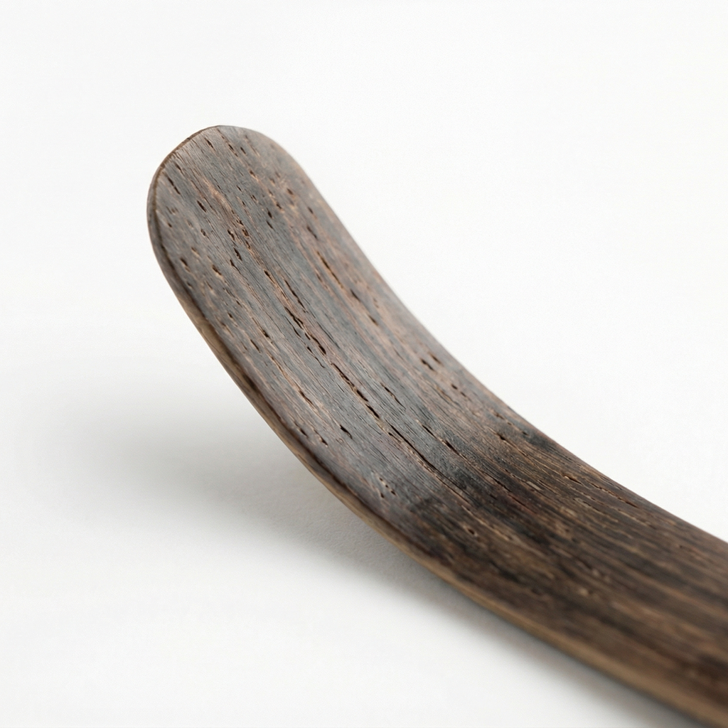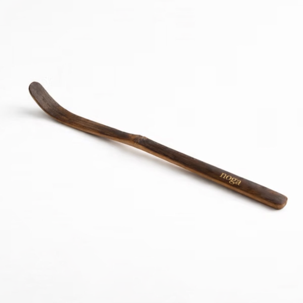Handcrafted matcha scoop (chashaku) made in Japan. Carved from dark bamboo, naturally aged and fire-treated for density and balance.